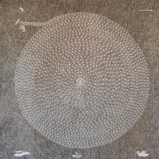 A recurring motif within Warli painting is the circular formation of figures performing the Tarpa dance, in which men and women move in spiralling patterns around a musician playing the tarpa wind instrument. This motif symbolises continuity and cyclical time, embodying the Warli understanding of life as an unending cycle encompassing birth, marriage, and death.